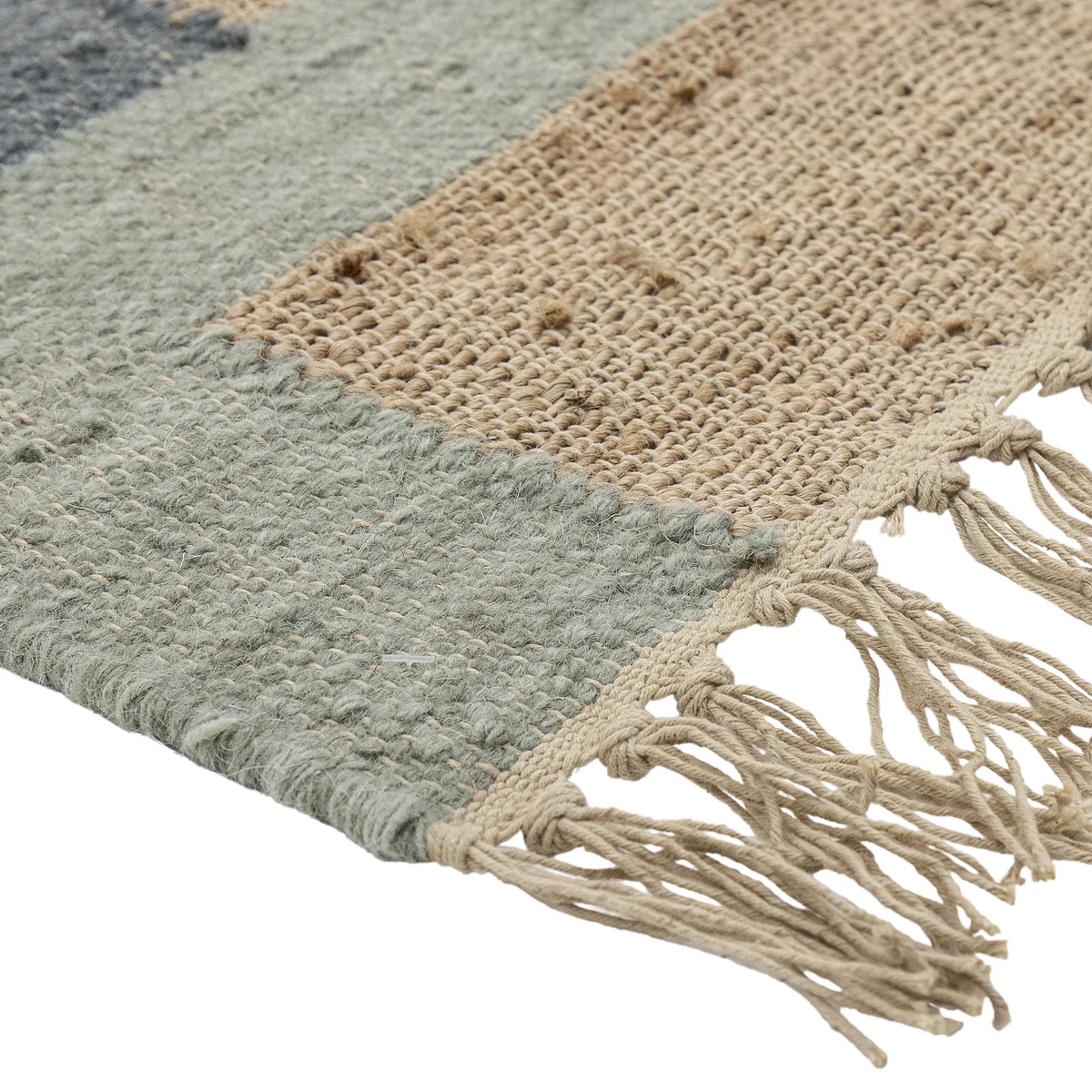 Zöld mintás kézzel szőtt szőnyeg, amely juta és gyapjú keverékből készült, minőségi kézzel szőtt szőnyeg. Ajánljuk előszobába vagy nappaliba. Geometrikus mintája, zöld és barna színei valamint a natúr rojtok hagsúlyozzák rusztikus stílusát. Mérete 245x78 cm. Gyártó: Creative Collection by Bloomingville